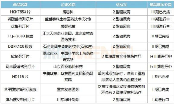 ±í4£ºÕýÔÚ¿ªÕ¹ÁÙ´²µÄ²¿·ÖDPP-4ÒÖÖÆ¼Á¹ú²ú1ÀàÐÂÒ©