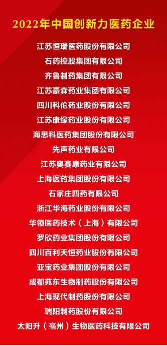 近年以来,海内立异药物领域支持政策频出,药品审评审批刷新、上市允许持有人制度试点、税收优惠等。这些政策引发了立异活力,加速了新药研发的速率。立异药及立异手艺已成为工业资源追逐的热门。在政策、资源、人才等多方因素配合增进下,研发实力突出、新药创造能力强的医药企业将脱颖而出。 为了直观生动展示立异药工业的政策系统以及生长模式下立异药企的精神风貌,为更好推动中国立异药工业生长树立标杆、孝顺力量,3月19日,“2022年中国立异力医药企业” 和“2022年中国立异力CRO企业”榜单在2023年(第十五届)中国医药战略大会上揭晓!江苏恒瑞医药股份有限公司、石药控股集团有限公司、齐鲁制药集团有限公司等20家企业入榜“2022年中国立异力医药企业”。